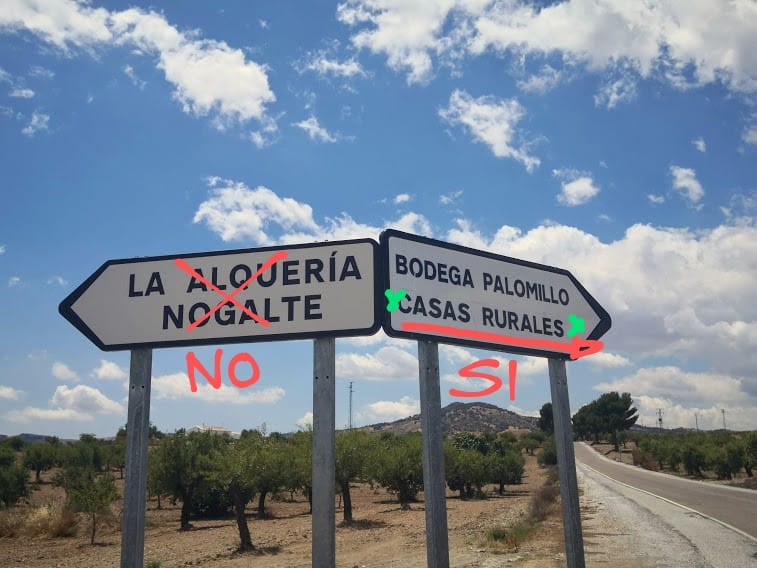 Continúe pasando el km 13 hasta llegar a un cruce en T con la señal “Vélez Rubio” (km 20) y “Los Gazques” (km 5). Gire a la izquierda y conduzca unos metros hacia Vélez Rubio. Gire a la derecha donde está la señal “Casa Rurales Joya” para tomar un camino rural con señales amarillas que lo lleva hasta Casa Joya.
